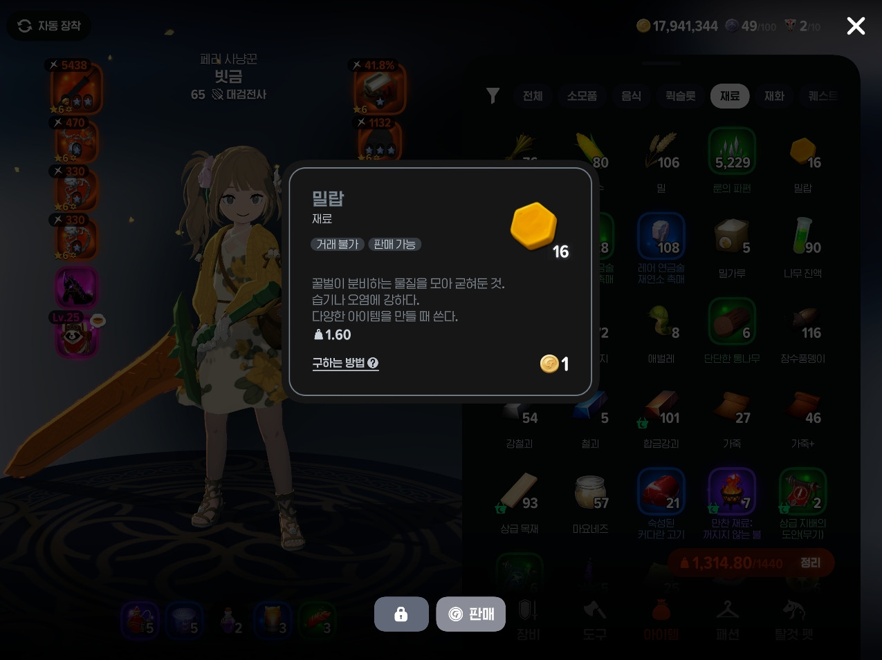 만약 밀랍이 부족하다면 부캐로 잡화점에서 추가 구매 가능하니 대신 제작하게 하는 것도 방법이에요.